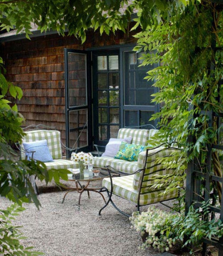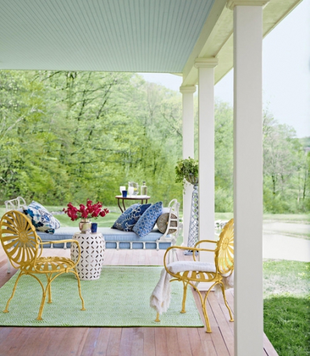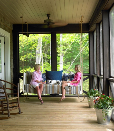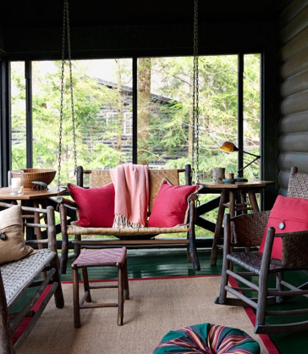 Il materiale più comune sarà il rattan, ma anche il legno, a seconda di ciò che vogliamo esprimere. La maggior parte dei proprietari hanno scelto di andare su uno stile tradizionale, classico, come è più accogliente. I divani sono la prima scelta, mentre sedie/poltrone o sedie a dondolo è in secondo luogo, quando si tratta di mobili. Inoltre possiamo trovare elementi insoliti ma pratici per una tale oscillazione grande.