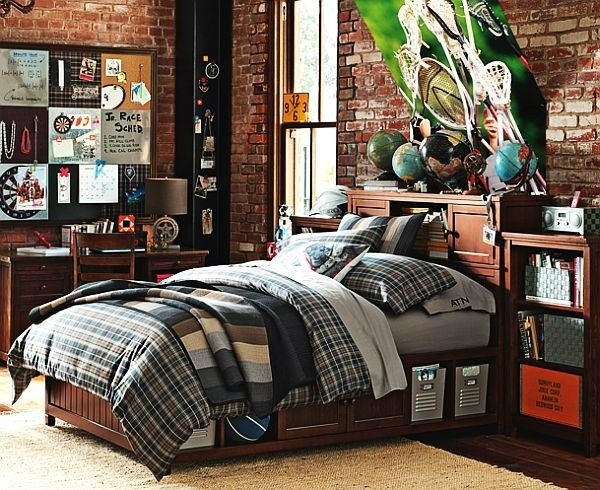Le camere per ragazzi sono più esigenti come quelle delle ragazze, anche se essi coinvolgono i fiocchi e le cose rosa.In termini di colore, i colori più comuni sono il blu, rosso, bianco, grigio o marrone,quindi più freddo che nel caso di dormitori femminili.