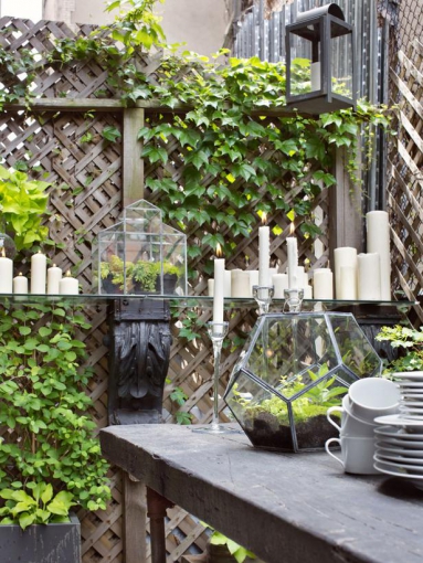 L’unico accessorio per “rilassare” un po ‘la atmosfera sono le luci catturati sulle piante rampicanti. I due giovani trascorrono le serate estive a loro luce e quelle delle candele.