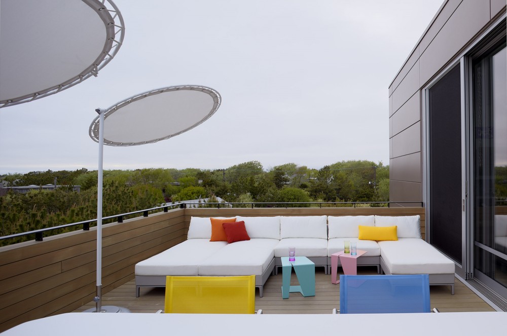 Il primo volume a doghe verticali (che si trova al piano terra) ospita diverse attrezzature. E ‘un buon spazio di deposito per la spiaggia, lo sport e gli oggetti relativi al tempo libero. Il volume centrale in legno ospita diverse camere da letto e bagni, per entrambi, gli ospiti e gli abitanti. Ora, per di più, c’è il volume rivestito metallico, contenente un soggiorno a pianta aperta, spaziosa, confortevole e, ultimo, ma non meno importante, con una vista mozzafiato sull’oceano. Il nostro posto preferito è (definitivamente) il salotto. Un’atmosfera calda e rilassante comprende il posto. Esso si trasforma magicamente in un rifugio romantico, specialmente durante le serate, quando i punti luce, sottili caldi sono accesi.