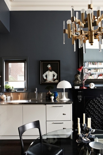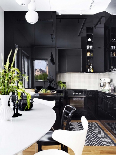 Il nero è molto difficile da integrare in quantità grandi in una stanza, perché l’atmosfera “dark”, essendo possibile ad un certo punto diventare soffocante per i beneficiari. Pertanto, il futuro della zona cucina richiedono pochi metri oltre a una cucina modesta.