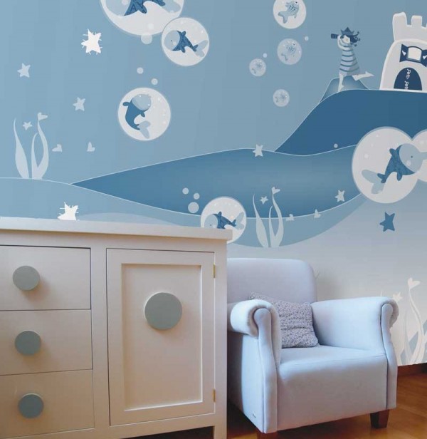 Murales.Un’alternativa comune è l’uso di murales. Può essere trovato in negozi una varietà molto ampia per bambini, con modelli, disegni e colori di gamma molto brillante e divertente. Hanno il grande vantaggio di essere resistente e lavabili, che li rende ideali per l’opzione camera dei bambini piccoli.
