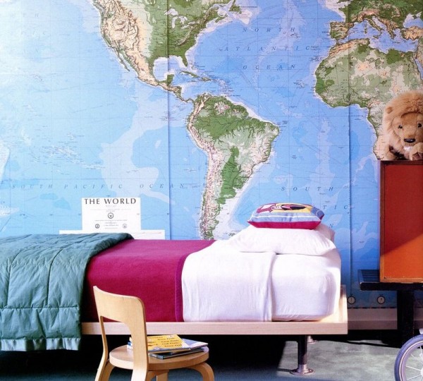 Mappe.Una quarta alternativa è quello di creare un “muro geografico”. Con mappe diverse o solo un muro gigante può essere rivestito per stimolare l’apprendimento dei ragazzi.