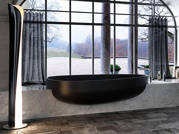 Le sue linee delicate sembrano contrapporre la rugosità del blocco monolite in polistirene rivestimento in che è fisso. L’aspetto elegante della vasca a forma di uovo-come potrebbe essere sfruttata al massimo in un bagno con finestre dal pavimento al soffitto e visualizzazioni di una natura incantevole, come nella prima foto di questo post. Ma se questo non è il caso, il suo design è più che sufficiente per una rilassante esperienza. Le sue dimensioni sono 185x109x60h e il monolite che si erge su misure 245x80x45h.Lo hai trovato interessante?