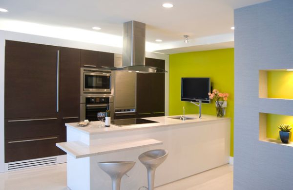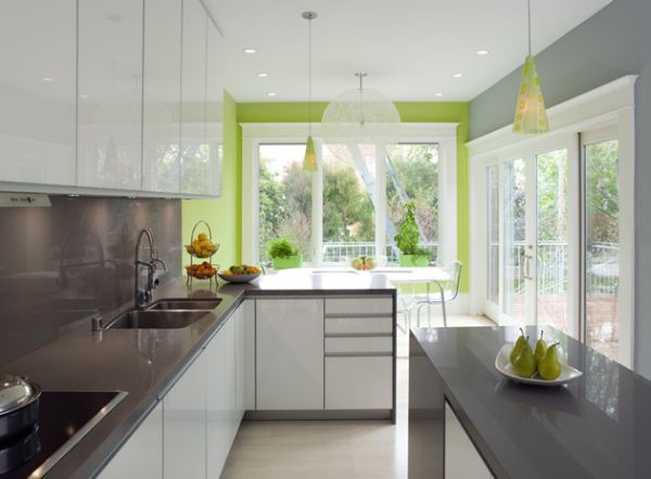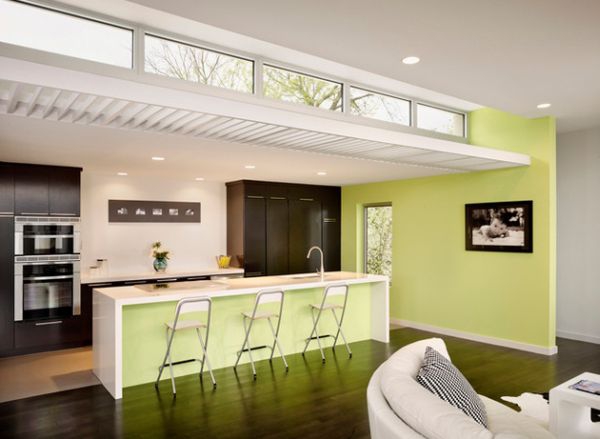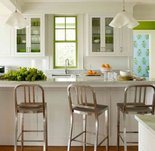 – Inizia con le finiture . Nel soggiorno o camera da letto, per esempio, concentrarsi sulla parete centrale (quella dietro il letto o il divano) ed applicare una mano di vernice. Automaticamente, il contrasto tra bianco / crema e verde, l’intero aspetto della stanza cambierà. Anche nel capitolo finiture , ma questa volta ci stiamo muovendo nella parete della cucina dietro il piano di lavoro può essere decorato con tessere di mosaico o vetro colorato, chiare sfumature verdognole.