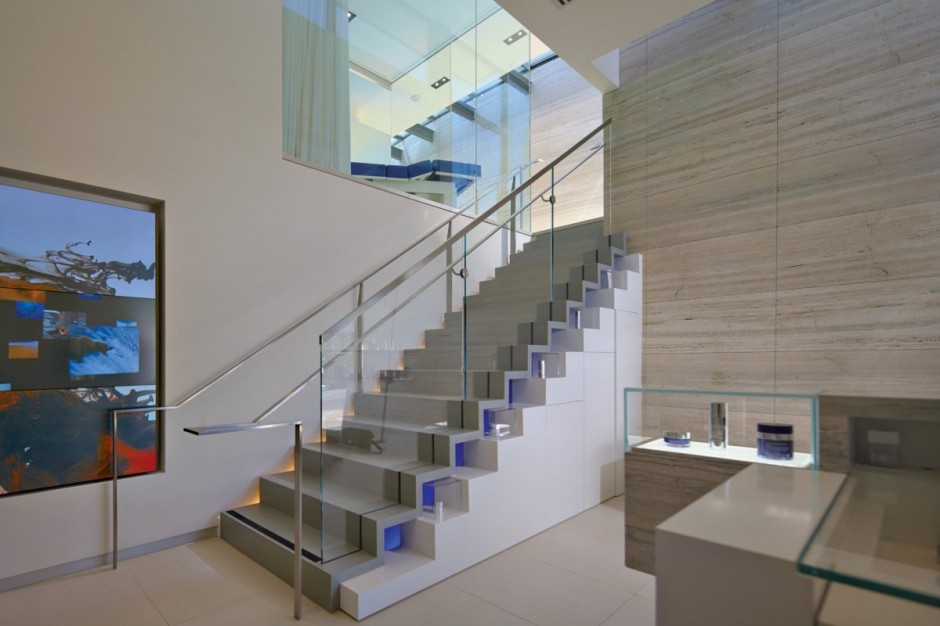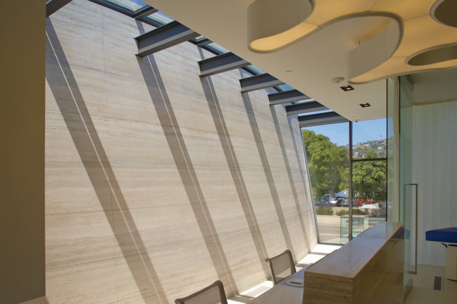 Sostenibilità e atemporalità erano gli attributi principali architetti finalizzati per: “due pareti principali di travertino d’argento organizzano gli spazi interni ed esterni mentre riflettendo anche i contorni corporei, sottili della pelle. Luce naturale entra gli spazi interni attraverso fessure continue queste mura dove si incontrano i piani del soffitto. La danza continua di luce e ombra su muri di pietra creare quello che Le Corbusier ha descritta come il corretto e magnifico, di forme assemblate nella luce“. Come vuoi commentare l’architettura di questa massiccia struttura?