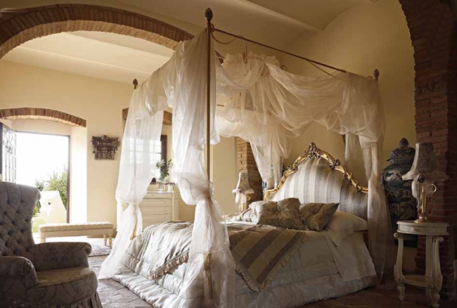 Come i nobili dormivano nella stessa stanza con i leali servitori,le tende dell baldacchino creano un ambiente intimo. Fino al XVI secolo, letti a baldacchino sono stati molto semplice in termini di lavorazione del legno, essendo l’unico assetto esistente sulle tende del letto, ma il 1500 ha portato un cambiamento, con una particolare attenzione alla scultura dei piedi e le testiere dell letto.