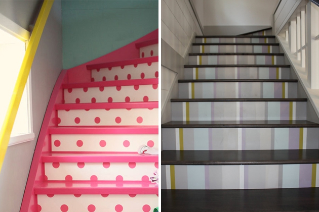 Un aspetto molto femminile danno la carta da parati con fiori incollati sul sotto grado. Sarebbe bene che il colore di sfondo corrisponda con il resto della stanza.Se volete una ristrutturazione della scala, forse le prossime foto vi spingerà a fare la scelta giusta.