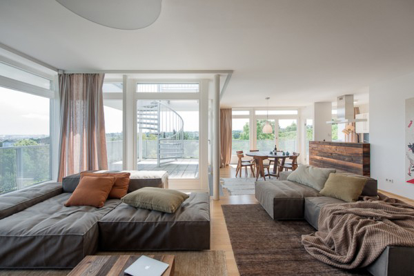 Quando abbiamo visto la prima volta la Penthouse Nussberg interno, a Vienna, abbiamo pensato che il cliente voleva davvero “una casa da ricordare”. E questo è esattamente ciò che Manzo Architekti (lo studio responsabile con la decorazione) è riuscito a fornire al loro cliente. Squisito, giocoso e con un tocco di eleganza rustica, la Penthouse Nussberg, con il suo ambiente bohemien (un antico albergo di Vienna, con una scala a chiocciola esterna), cerca di offrire un’esperienza unica, fondendo la sensazione naturale con il comfort contemporaneo.