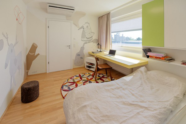 L’attico, situato su una collina, si affaccia sulla splendida città. L’appartamento si distingue, grazie al suo “eccesso” di luminosità. Si può godere di momenti meravigliosi, guardando il sole al tramonto o bere una tazza di caffè al mattino, sulla terrazza. Pavimenti in legno, sedie e diverse tonalità di marrone, creano un ambiente di ispirazione naturale e quasi casetta-like.I dipinti sulle pareti e tappeti colorati, però, la trasformano in una casa più interessante e contemporaneo. Il risultato: un interno moderno giocoso, creativo e brillante.