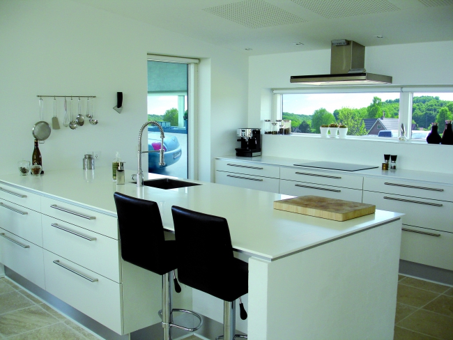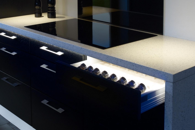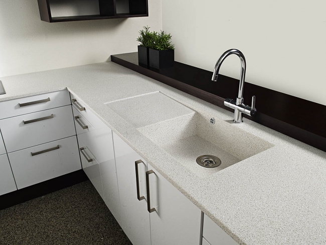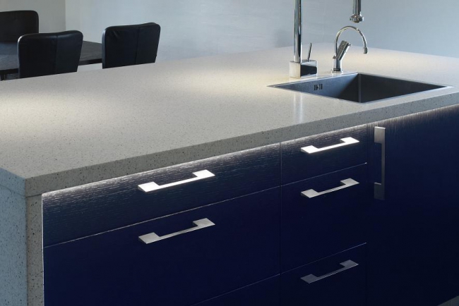 Per tale spazio, si propone grandi piani di lavoro, area bar e isole appositamente a seconda delle esigenze. Essi può essere fatto da un materiale speciale con un elevata resistenza, come il granito, composta nei toni del beige al nero nero-africa, quarzo bianco mescolato con vetro riciclato o quarzo perla perla nera. L’offerta può trovare anche materiali inserti di pietre preziose per dare alla vostra casa un aria unica.