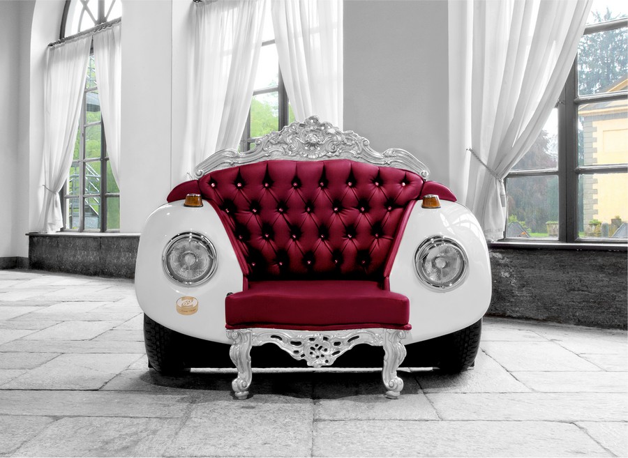La collaborazione tra Andrea Colombo (interessato a vetture iconiche) e Linda Assandri (appassionato di dettagli Swarovski e glam) ha condotto allo sviluppo della poltrona Glamour Beetle Armchair. Il duo dal Design Glamour ZAC lanciato un approccio unico ai mobili, che unisce elementi barocchi e auto Art. Nel caso la poltrona presentata nelle foto qui sotto, i progettisti utilizzato real Volkswagen Beetle MY1968 Ali e una sedia imbottita con cristalli Swarovski e luci a LED.