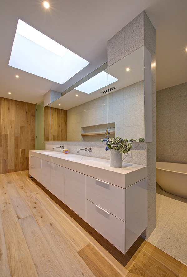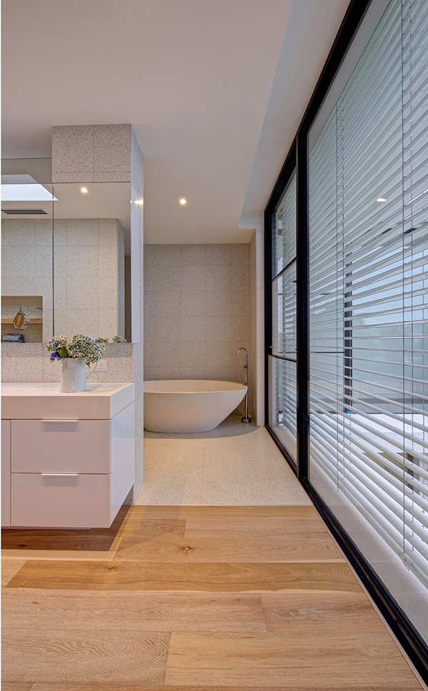 Ci piace molto questo splendido spazio interno perché è il risultato di un meraviglioso gioco di forme (senza essere troppo eccentrico) e si ispira anche un caldo sentimento di appartenenza in un luogo che evoca la serenità. Linee contemporanee, belle curve e finiture impeccabili – questo è ciò che la casa Brighton Escape è fatta di.