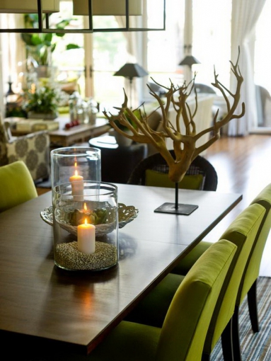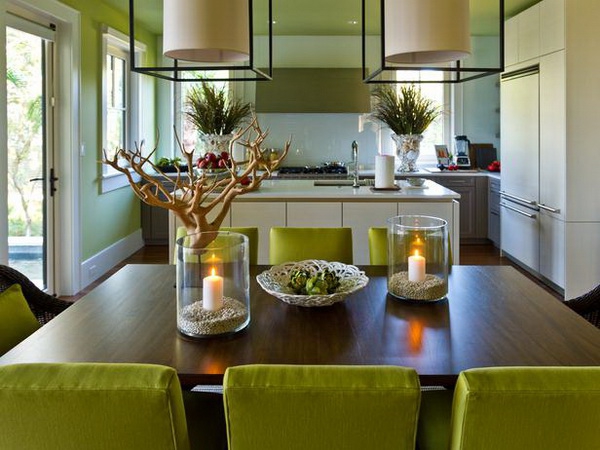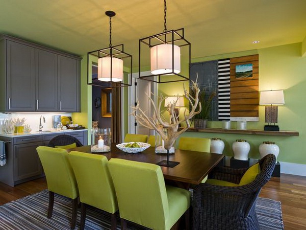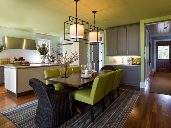 Abbiamo voluto molto per introdurre il vostro pranzo in immagini e spero che potrebbe servire come fonte di ispirazione per i futuri miglioramenti.Come accade nella maggior parte dei casi,la sala da pranzo si trova in uno spazio aperto che comunica con la cucina e il soggiorno e non solo per l’assenza delle paretti, ma anche a livello cromatico. Verde è un colore piacevole, calmo ed eccitato allo stesso tempo, passando allo stesso tempo l’idea di eco. Pertanto, abbiamo a che fare con un interno di eco-friendly. Le pareti e il soffitto sono ordinatamente con sedie a tavolo, mentre il grigio è il colore scelto per gli interni.