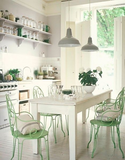In caso contrario, è possibile scegliere alcuni pezzi, come l’isola cucina o sedie per tavolo da pranzo che contrasta piacevolmente con il resto dei mobili.
