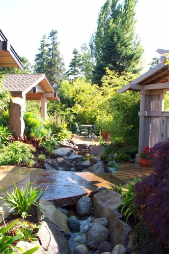 Anche se richiede uno sforzo in più da parte del beneficiario per creare questa atmosfera, per introdurre un disegno in spazi limitati e elementi orientali come pietre massicce di fiume, alte porte in legno, bambù e aceri, giardino asiatico fornisce un buon modo di evidenziare la casa, non solo area esterna.