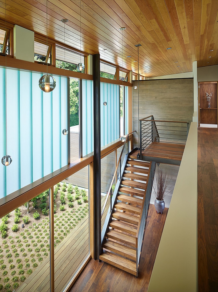 L’apertura verso terrazze, giardini e ampie vedute, il cortile della casa immaginato da DeForest Architects ispira una vera sensazione di vacanza. Gli interni di questa bella casa a Seattle, Washington, Stati Uniti d’America sono quasi del tutto nascosto dalla strada, con l’aiuto di un imponente recinto di legno e vetrate mosse al secondo livello. Ma come si passi a piedi sulla proprietà, la magia si scatena. Un cortile perfettamente curati suggerisce la strada per l’ingresso principale e il soggiorno a pianta aperta, con gran parte della struttura del pavimento rimosso.