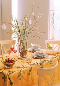 Così un modello semplice con delicato ricamo e offrirà un aspetto speciale della decorazione intera.È importante non caricare l’atmosfera, così si raccomanda che solo un lato del tavolo di averla con modello.