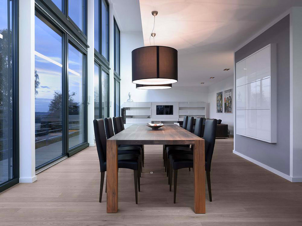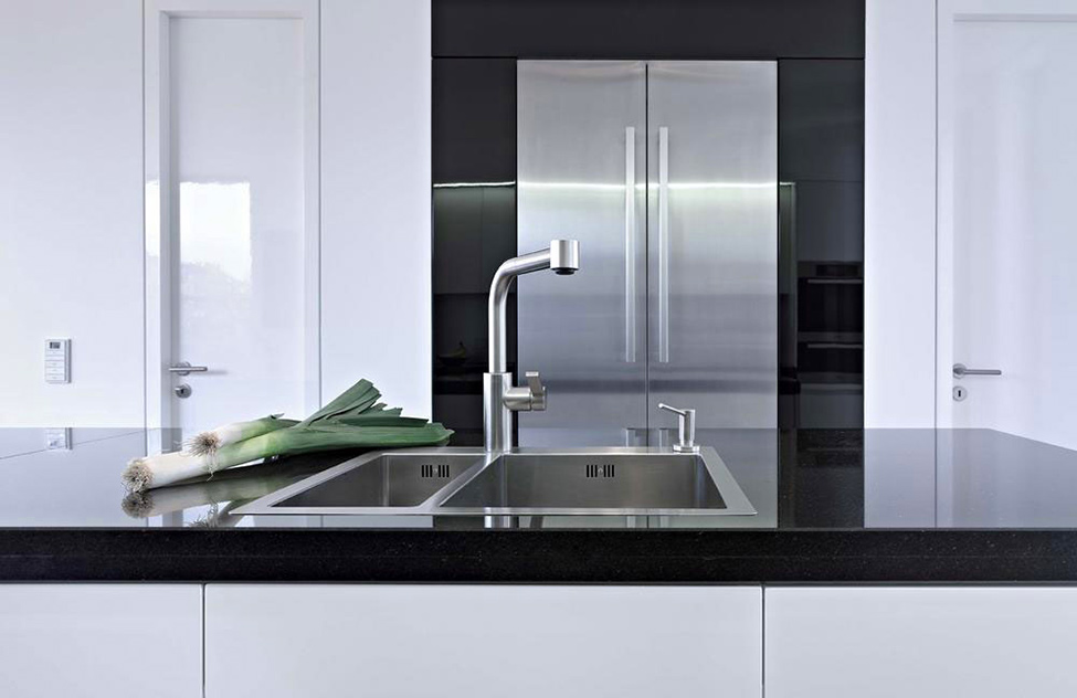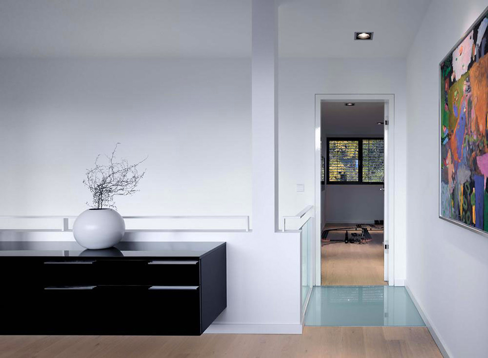Sembra strutturato, pulito e, ultimo, ma non meno importante, equilibrato.In questo caso particolare, il team responsabile del progetto, architetti e designer provenienti da Leicht di studio, bianco utilizzato come base, con corrispondenti evidenzia in colore contrastante. Il piano terra ospita il salone, la zona pranzo e la cucina – in altre parole, uno spazio soggiorno open space, ben illuminato e ordinato.